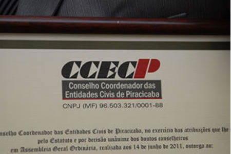CCECP - Conselho Coordenador das Entidades Civis de Piracicaba, homenageia Regina Costa